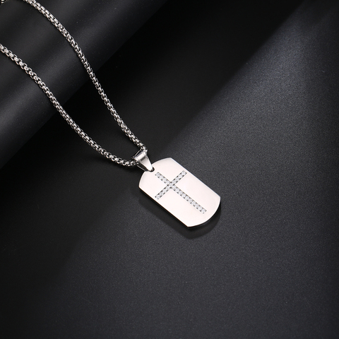 祝福された信仰カスタムロゴステンレス鋼クロスネックレスパーソナライズ宗教キリスト教ジュエリージルコン付きギフトパーティー