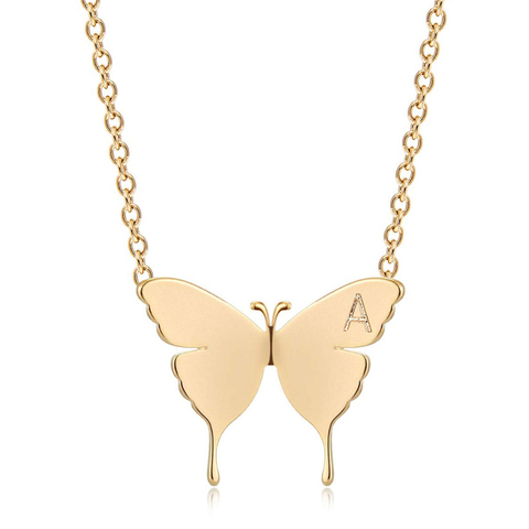Loftily collana con ciondolo a farfalla iniziale con nome personalizzato gioielli in acciaio inossidabile placcato oro 18 carati per le donne