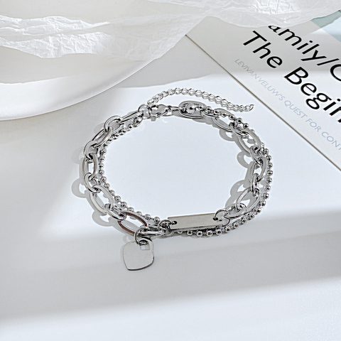 Loftilly สร้อยข้อมือสแตนเลสทรงเรขาคณิตสองชั้นแฟชั่นแบบกำหนดเองจี้รูปหัวใจกลม