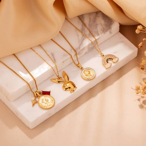 Vòng cổ bán buôn kiểu hoạt hình dễ thương, mặt dây chuyền mạ vàng 18K, thép không gỉ, chống nước và chống mồ hôi