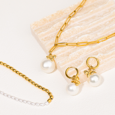 Nhà Máy Bán buôn 18K mạ vàng Chuỗi vòng cổ trang sức thép không gỉ Vòng cổ ngọc trai